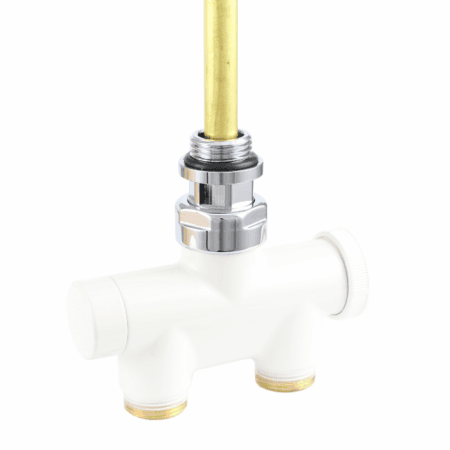 pre 1-rúrkové sústavy, s termostatickým zvrškom bez možnosti prednastavenia, Prípojka na vykurovacie teleso vonkajším závitom G 1/2″ s O-krúžkom, prevlečná matica k ventilu. Umožňuje 1-bodové pripojenie vykurovacieho telesa zdola s ponornou rúrou dĺžky l = 290 mm a priemeru 11 mm. Pripojenie na rozvod vonkajším závitom M 22×1,5 s kužeľovým tesnením.