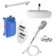 Set obsahuje: Podomietkovú zmiešavaciu batériu čiernu pre 2 odberné miesta, vrchnú rozetu čiernu pre zmiešavaciu sprchovú batériu pre 2 odberné miesta, hlavovú sprchu, rameno pre sprchovú trysku, vývod zo steny, 1/2 “, dĺžky 375 mm, ručnú sprchu, vývod zo steny s držiakom a sprchovú hadicu.
