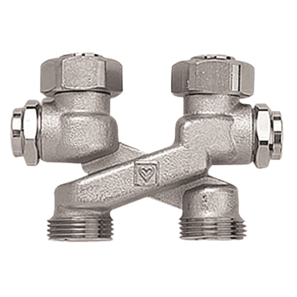 pre osovú vzdialenosť rúrok 50 mm, na uzatváranie, napúšťanie a vypúšťanie. Pripojenie kužeľovým tesnením G 3/4 presuvnou maticou. Pripojenie rúrky vonkajším závitom G 3/4 s kužeľovým tesnením pre prechodku.