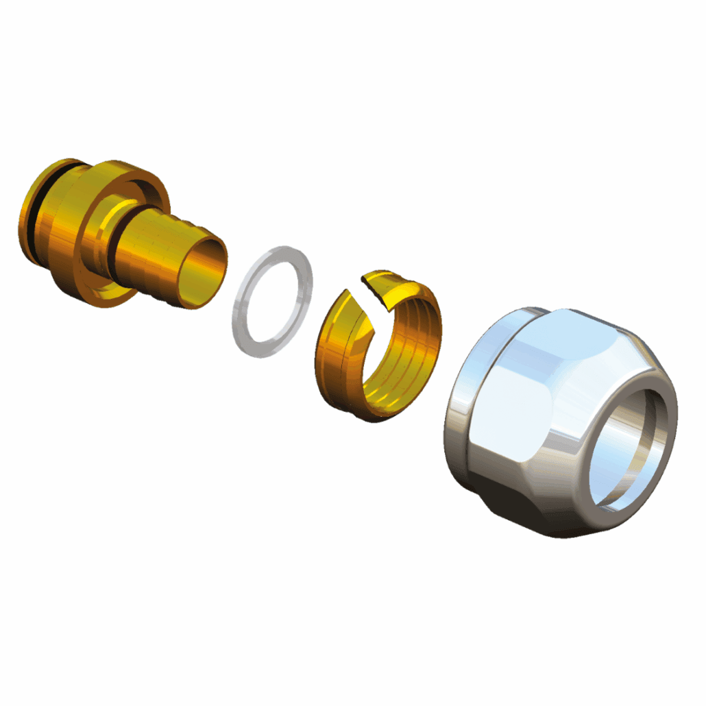 pre rúry z PE-X, PB a kompozitných plastov, matica so svorkovým krúžkom M 22 x 1,5, pochrómovaná.