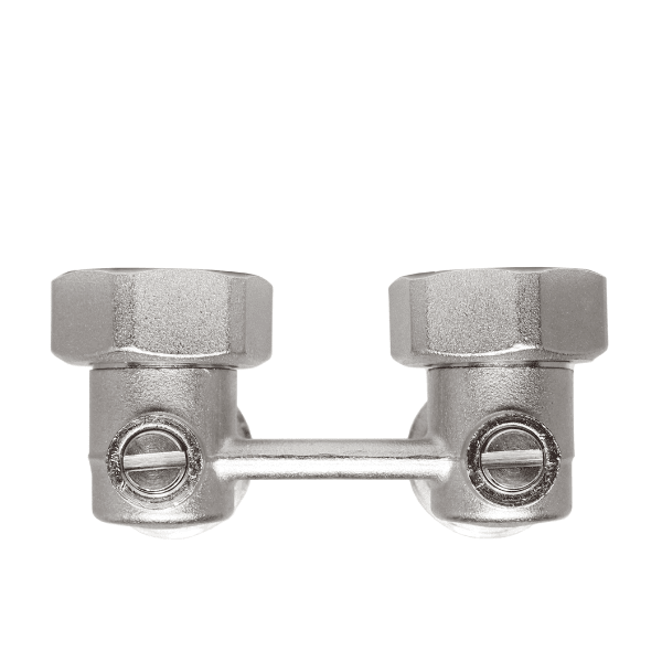 Osová vzdialenosť pripájacích hrdiel je 50 mm, uzatváranie pomocou dvoch guľových kohútov, pripojenie vykurovacieho telesa G 3/4 presuvnou maticou, pripojenie rúrky vonkajším závitom G 3/4 s kužeľovým tesnením pre prechodku (objednávať samostatne).