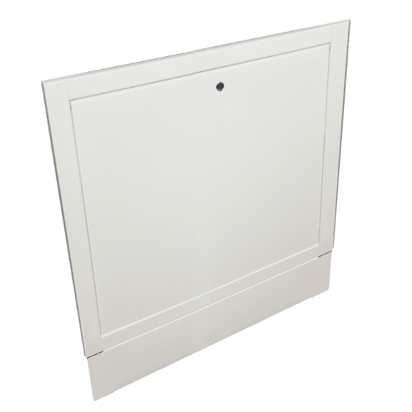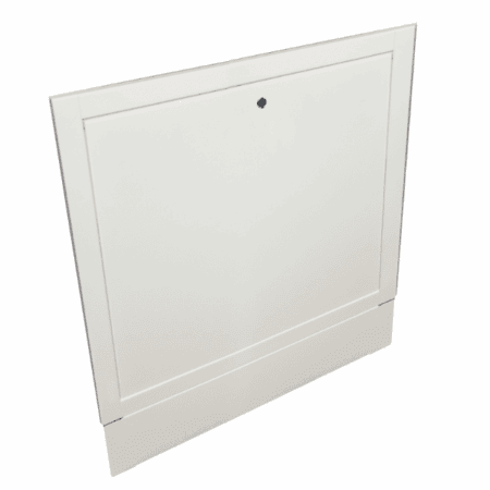 Pre montáž na stenu, vyrobená z oceľového pozinkovaného plechu, predné dvierka a rám sú lakované RAL 9003, montážna hĺbka 130 mm, výška skrinky 780 mm, upínacia lišta pre držiaky rozdeľovačov a predný kryt, odnímateľná vodiaca lišta, dvere skrinky bez zámku, otváranie plochým skrutkovačom.